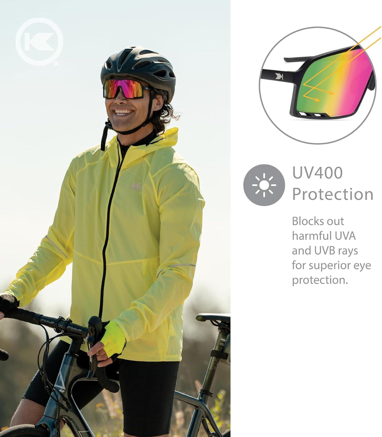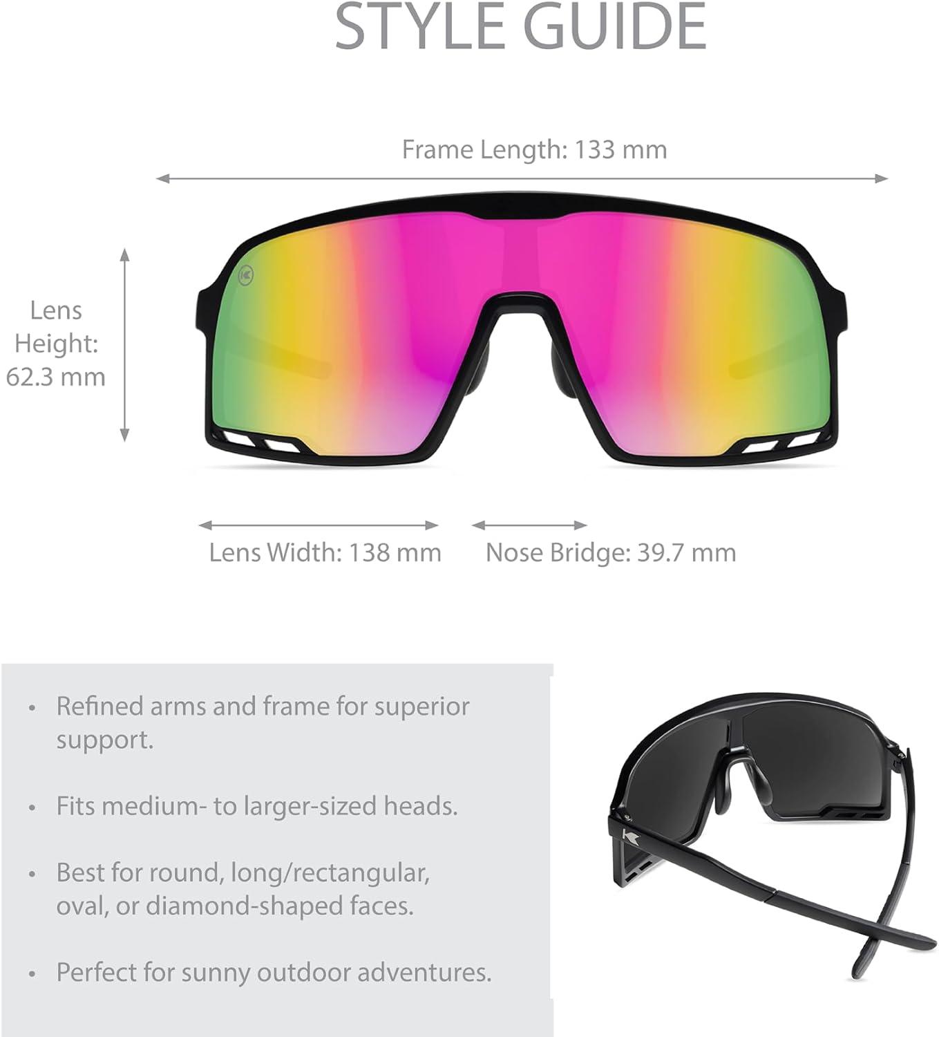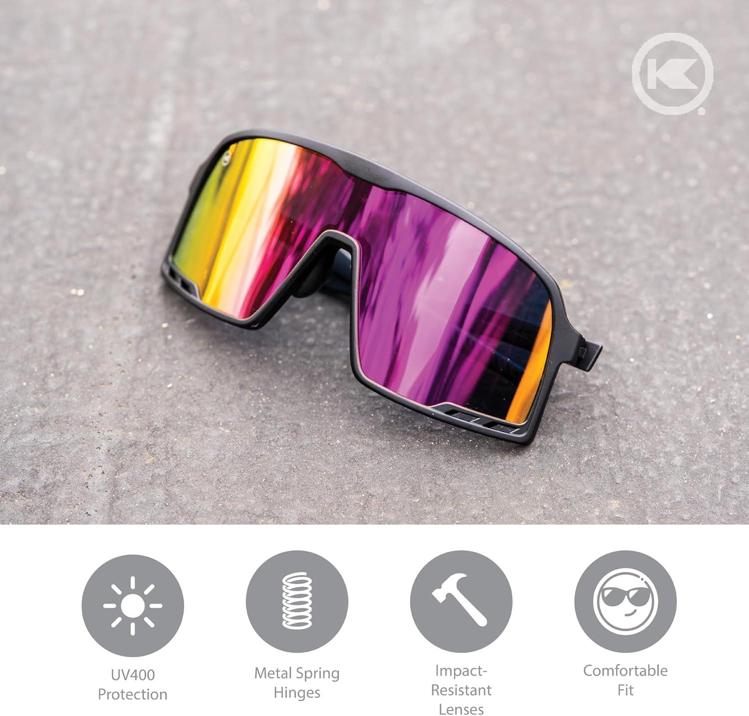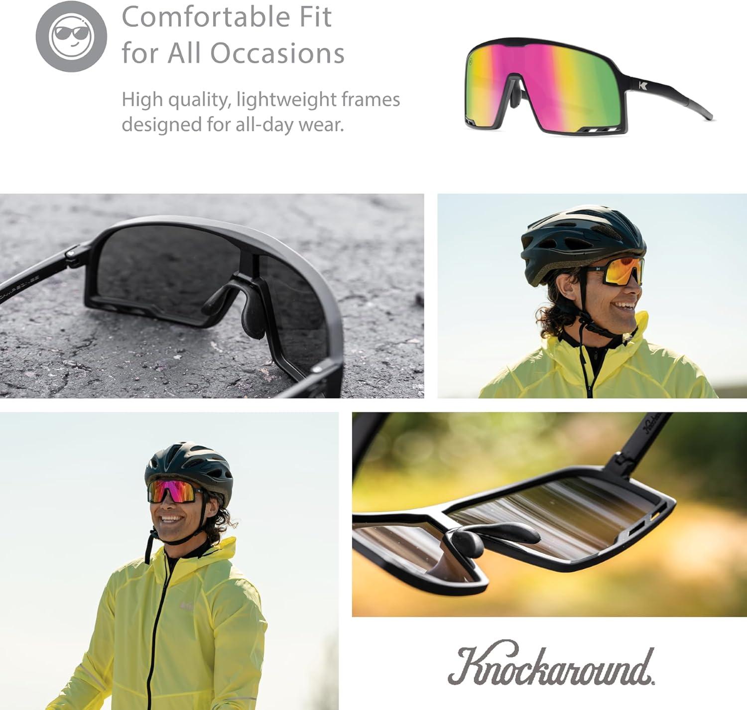 Knockaround Campeones Wraparound Sunglasses for Men and Women – Performance Lenses with Full UV400 Protection(Rainbow on Black)