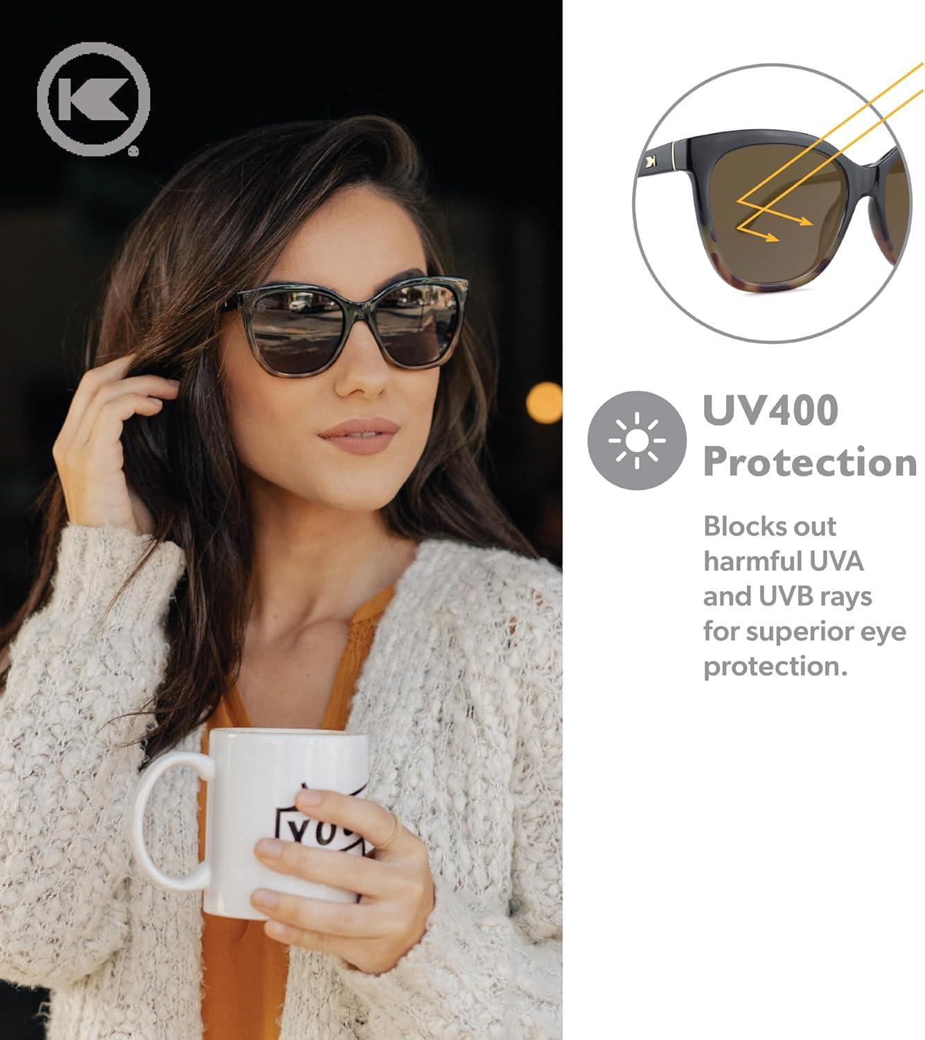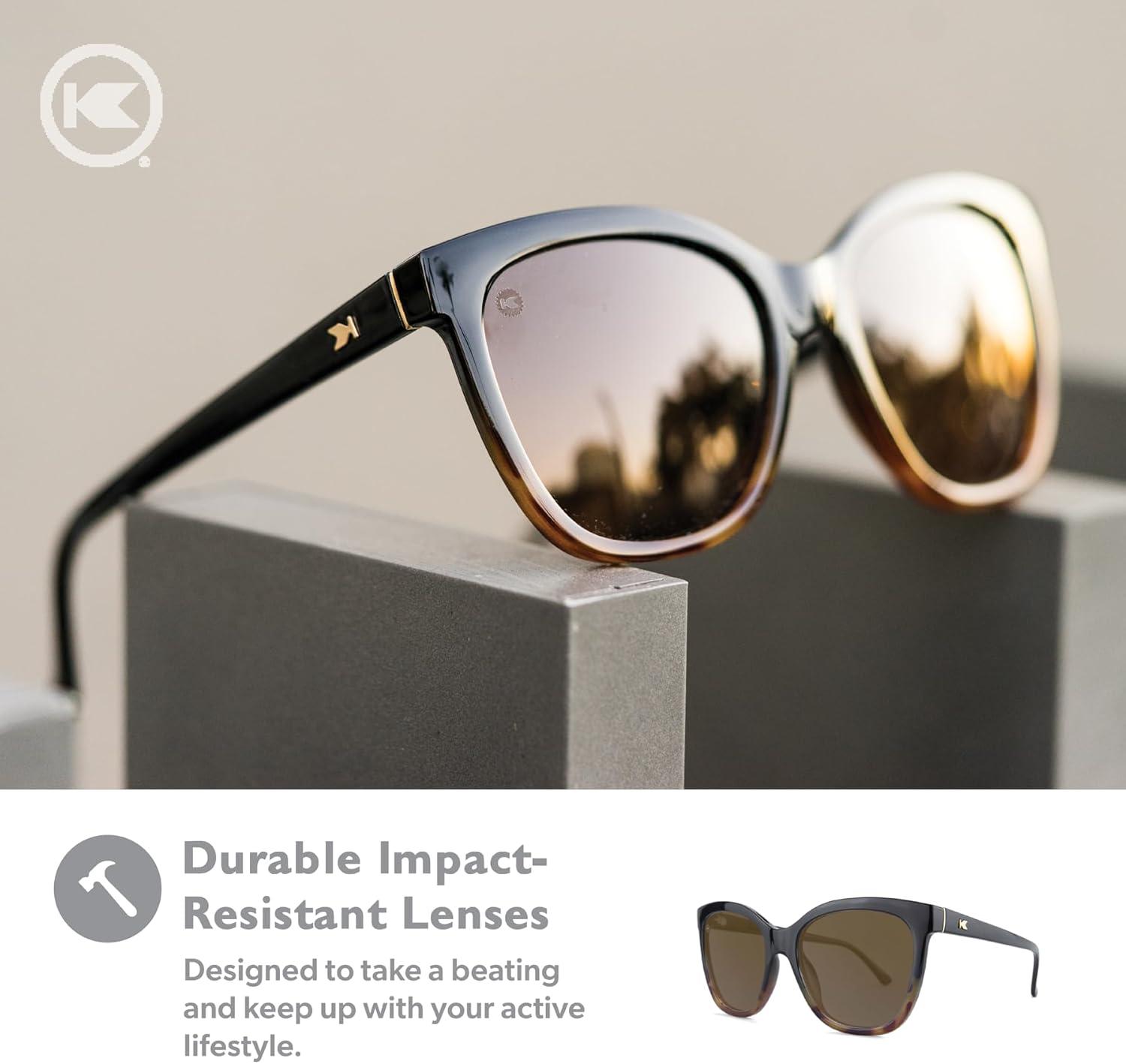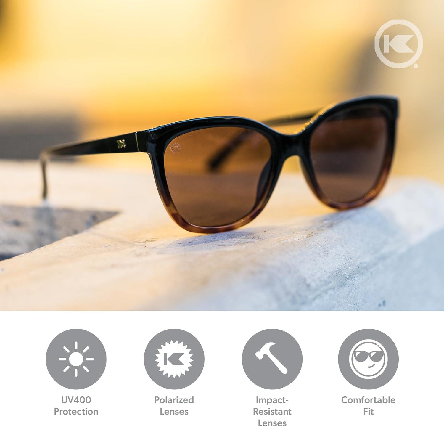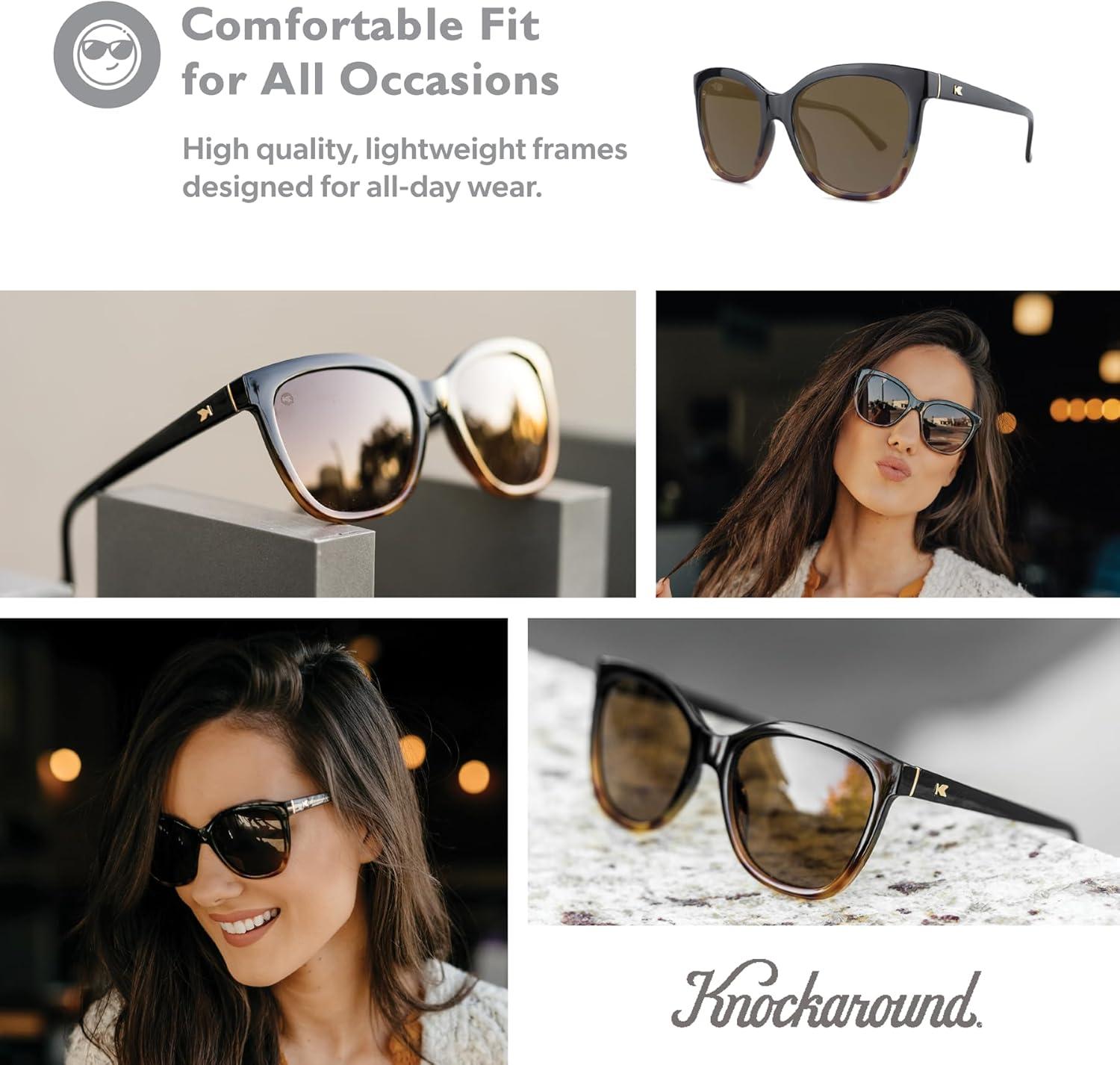 Knockaround Deja Views Polarized Sunglasses for Women – Impact Resistant Lenses & Full UV400 Protection(Glossy Black & Blonde Tortoise Shell Fade / Amber)