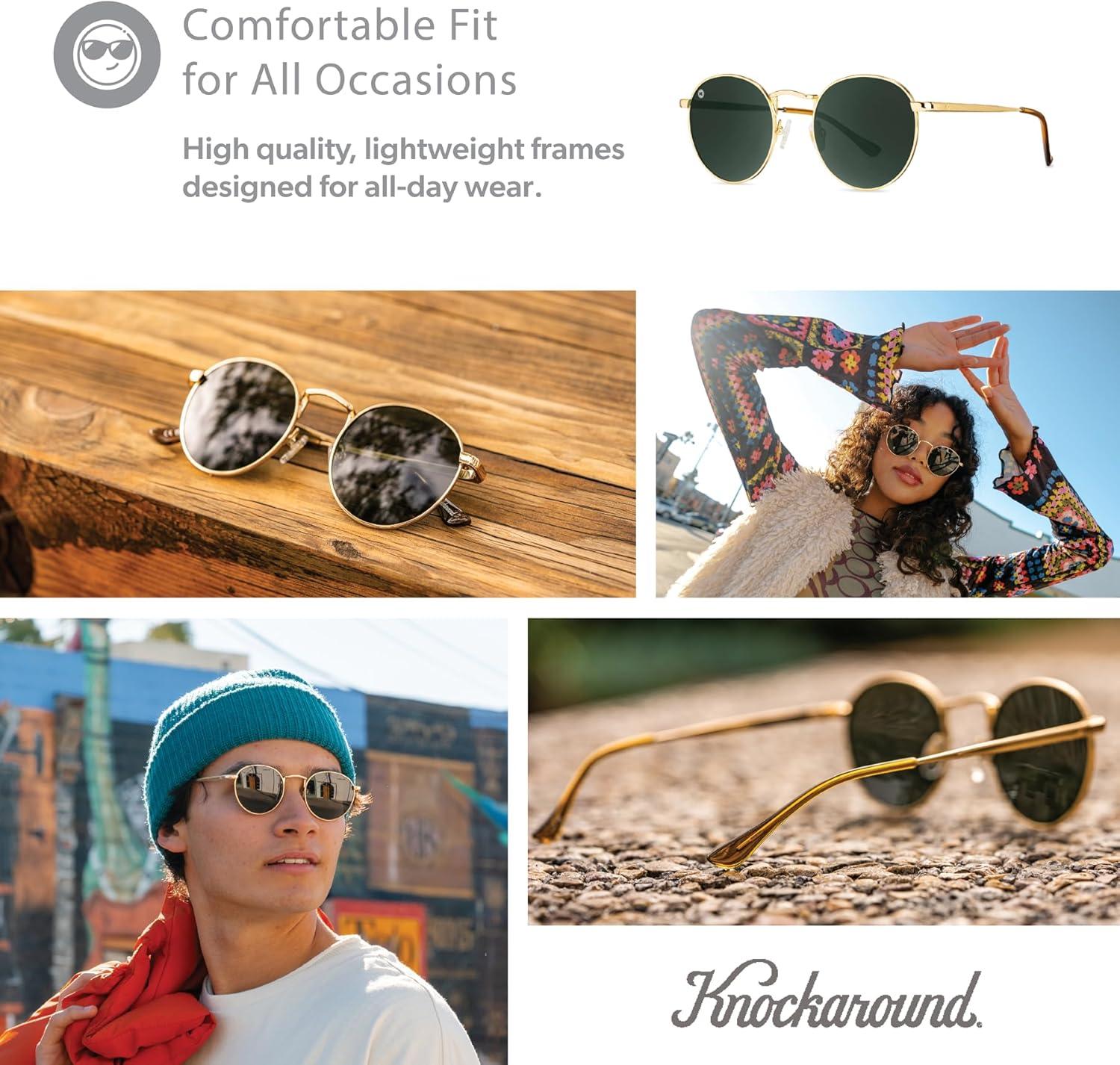 Knockaround Love & Haights Polarized Sunglasses for Men & Women – Impact Resistant Lenses & Full UV400 Protection(Gold/Aviator Green)