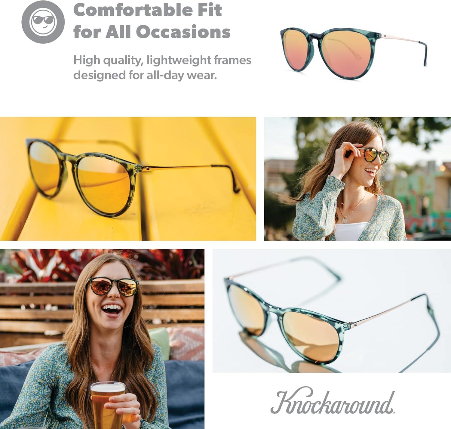 Knockaround Mary Janes Polarized Sunglasses for Men & Women – Impact Resistant Lenses & Full UV400 Protection(Slate Tortoise Shell / Rose Gold)