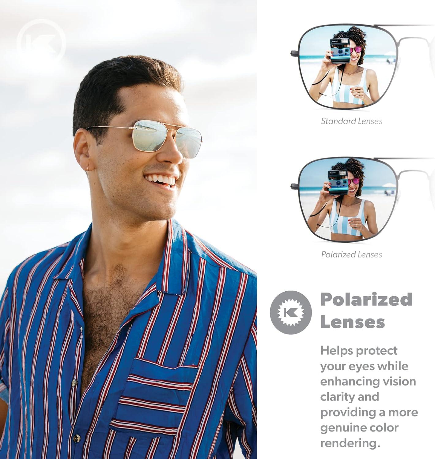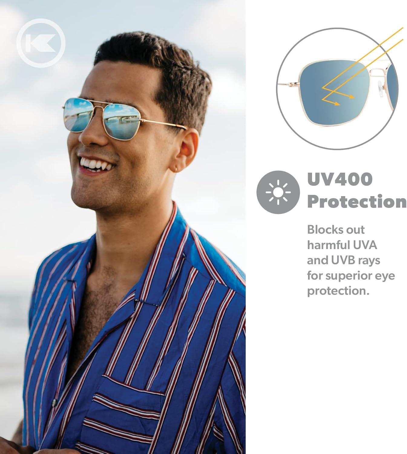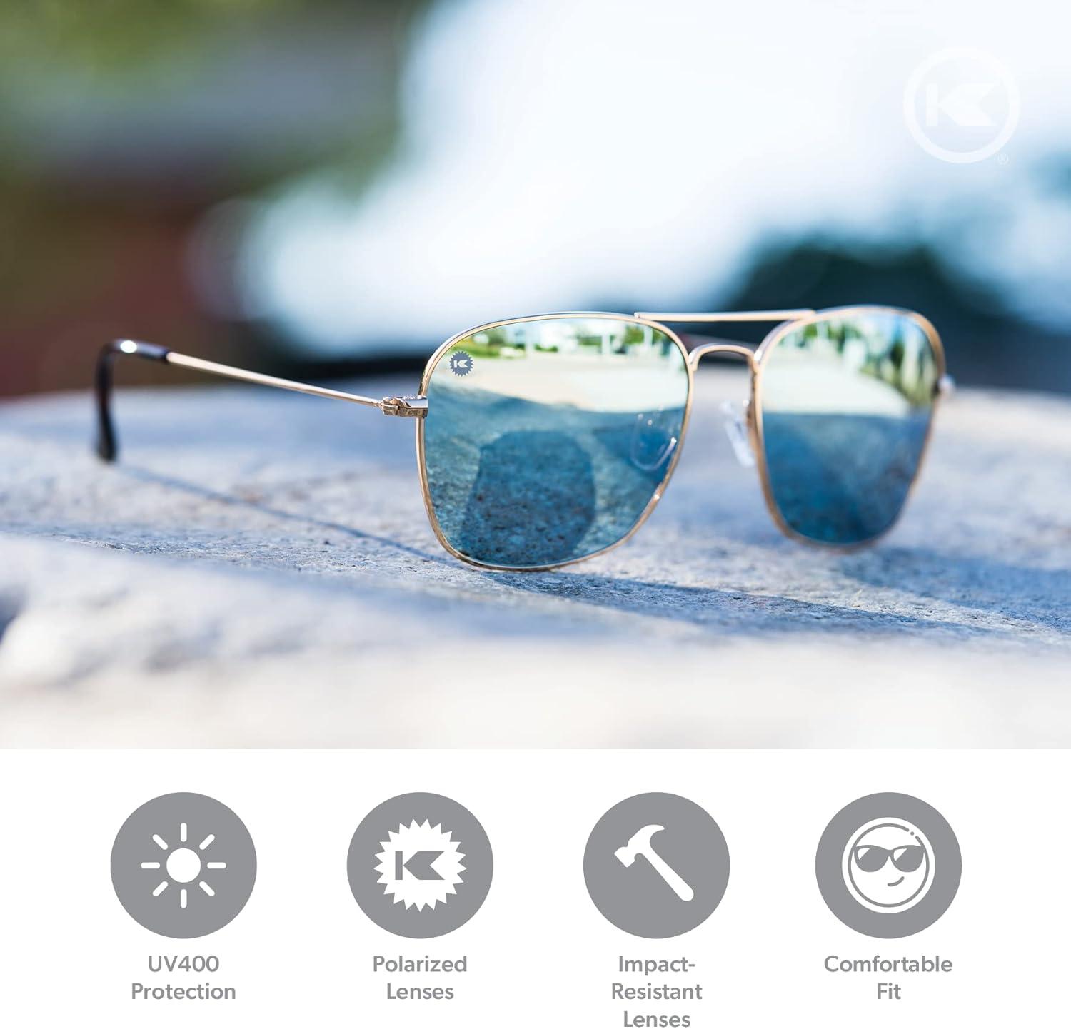 Knockaround Mount Evans Polarized Sunglasses – Squared Aviator Style Sunglasses with Full UV400 Protection(Gold/Sky Blue)
