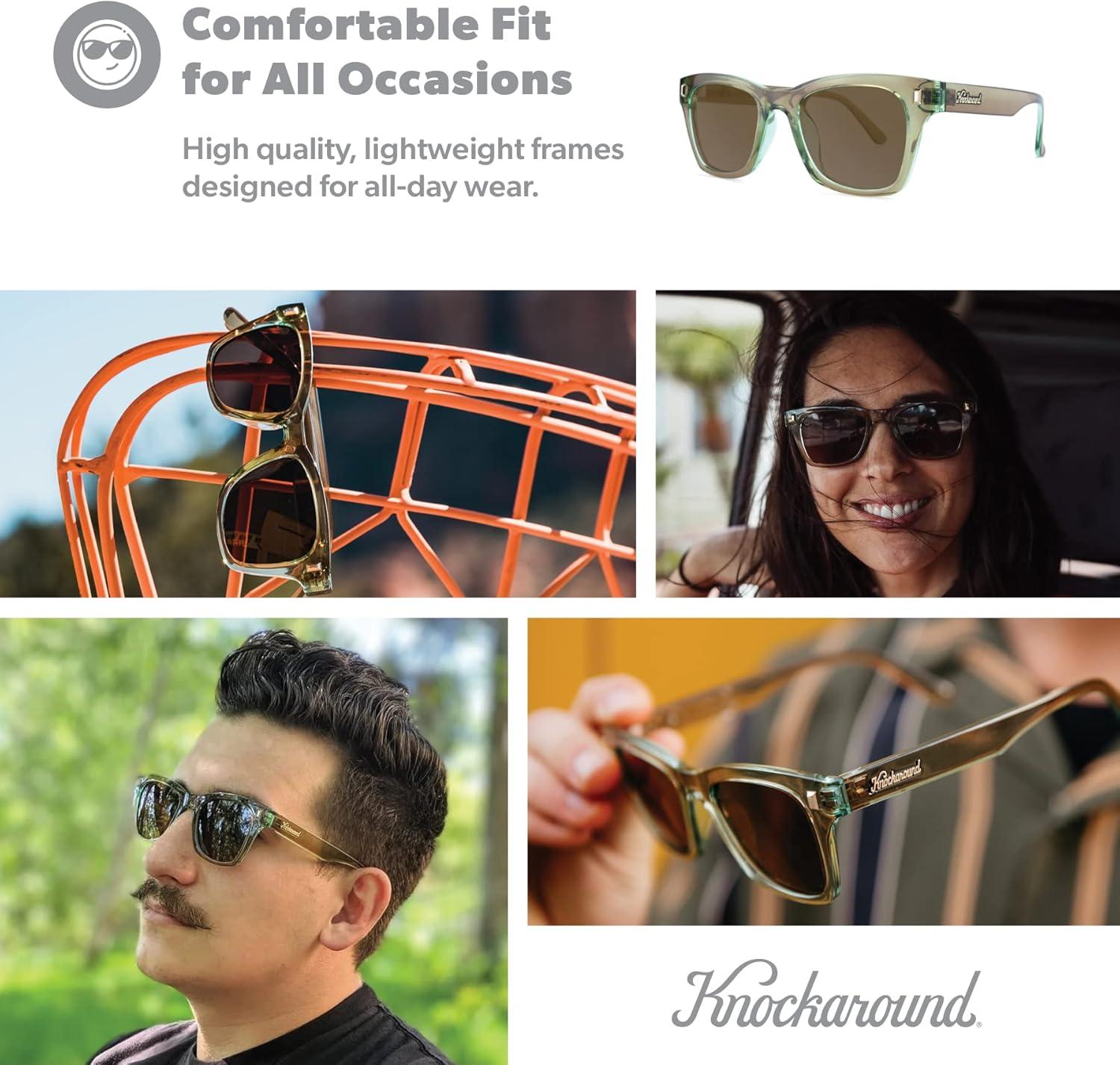 Protective Pouch Included – Every pair of Knockarounds sunglasses come with a soft pouch that doubles as a microfiber lens cleaning cloth to keep your sunglasses safe. Whether stored in your car, backpack, or pocket, these polarized sunglasses stay protected and ready for sunny days ahead.